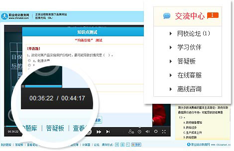 职业培训教育网精品班、实验班课程采用在国际上处于领先的“智能交互式课件”系统,视频课程播放过程中,会根据老师讲解的重难点随机弹出知识点测试、单元测试及辅助讲解三种不同形式的对话框,帮助考生及时巩固所学、全面提升学习效果。