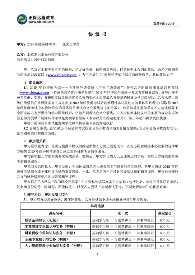 经济师考试“通关班”协议书
